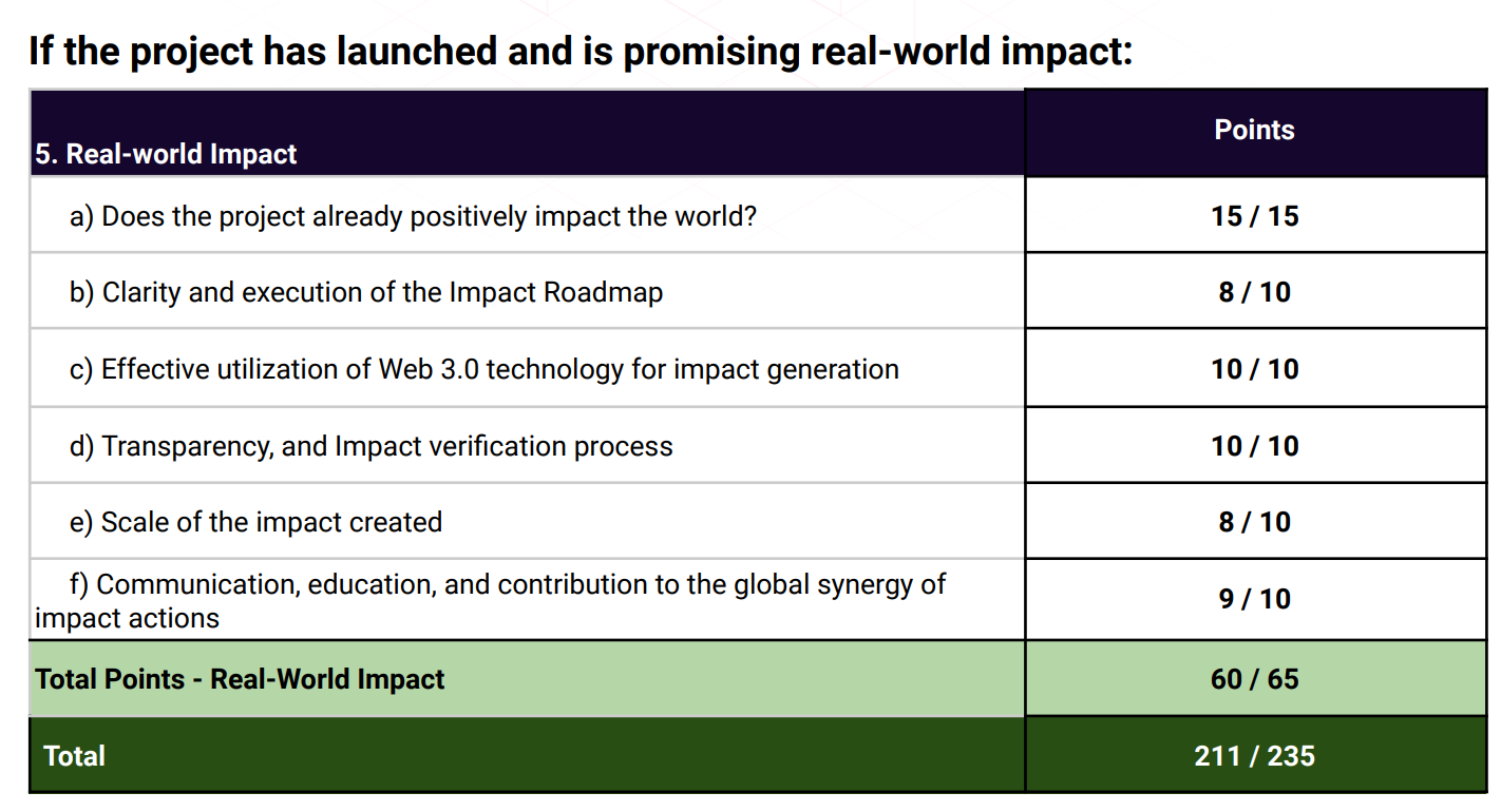 The analysis was conducted using a score-card to evaluate key metrics such as Team, Traction, Tokenomics & Governance, as well as the Impact Proposition and Real-World Impact on the ground.