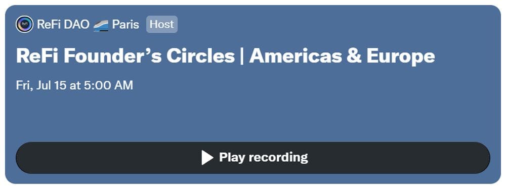 Listen to the replay of the first ReFi Summer Founders Circle (Americas & Europe) featuring Helena Merk of Spirals Protocol and g0rd0n of New Atlantis DAO.
