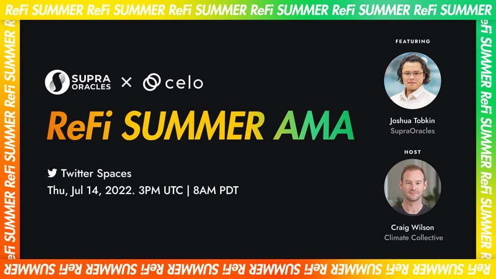 Listen to the replay of Celo's ReFi Summer AMA featuring Joshua Tobkin of SupraOracles and hosted by Craig Wilson of Climate Collective.
