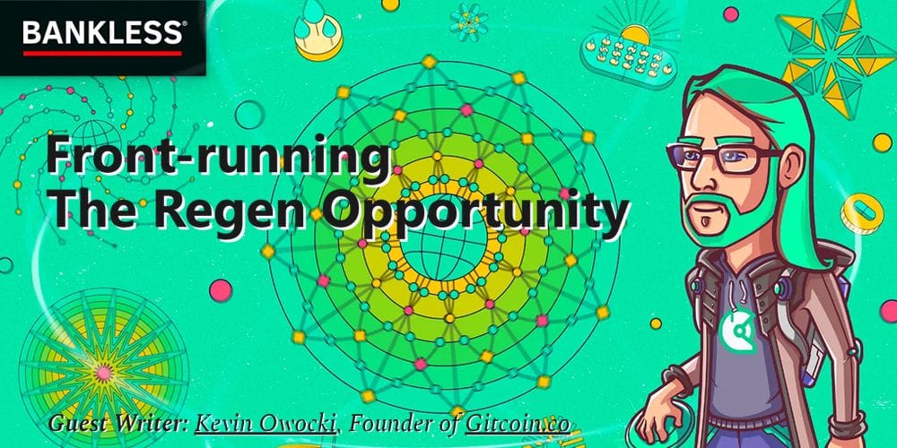 For many of us in the crypto ecosystem, Bankless has been an invaluable community resource to help navigate this uncertain market and understand the narratives that drive it.  So when Bankless latches onto a topic, people tend to tune in.  This week, the team sent out a newsletter entitled “Front-running the Regen Opportunity.”  Authored by Kevin Owocki of Gitcoin, the article spelled out how regenerative cryptoeconomic concepts and projects are setting themselves up to completely change the way the world works.  Aside from the enormous potential upside, many of these projects are focused on real-world impact and aiding the transition from our current extractive economy to one that is sustainable and regenerative.