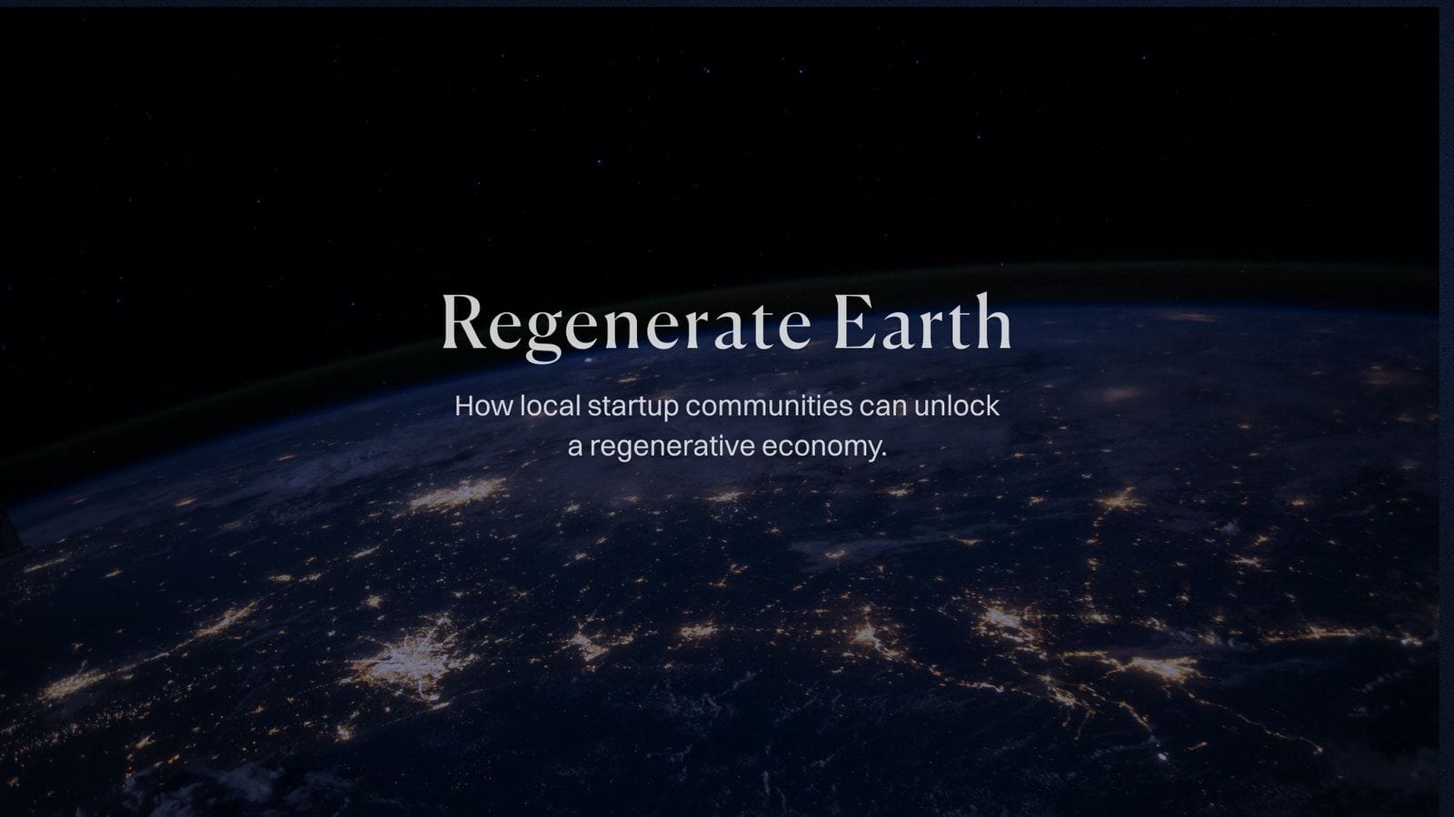 A network state to regenerate the earthβrooted in local startup communities around the world.