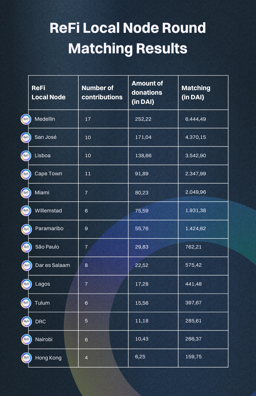 Now, without further ado, it's time to announce the matching results of the ReFi Local Node Round! ๐